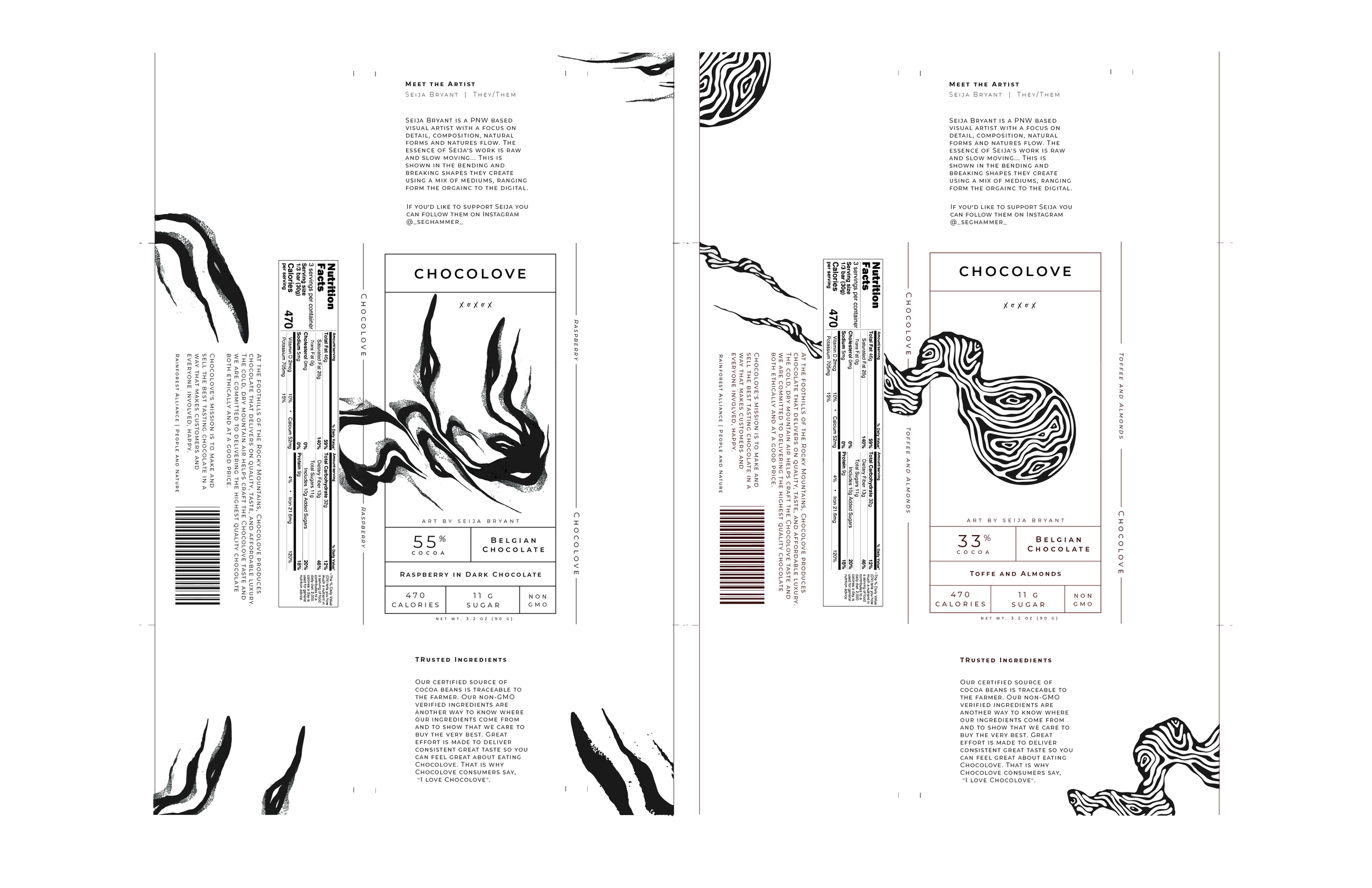 Lastly, I got in contact with Seija Bryant, the artist I chose to highlight through this project and got their permission to use their work as the centerpiece of my packaging.